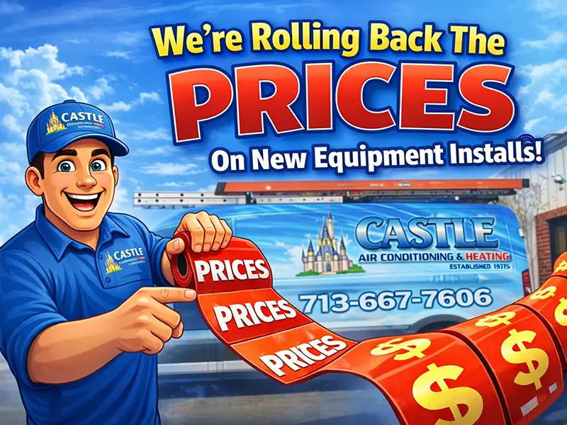 Houston heat is coming. And for a limited time, Castle Air Conditioning & Heating is rolling back installation pricing to pre-inflation levels on new equipment installs across Southwest Houston, Memorial, Katy, and surrounding neighborhoods.